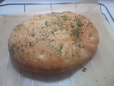 シンプルな岩塩と、自家製パセリを乗せただけのフォッカッチャです。
