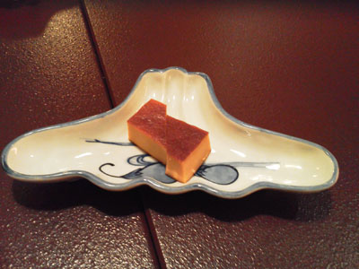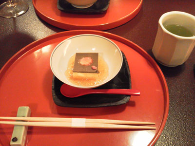 小鉢は真ん中をお花の形に切り取って、花びらが一枚ある胡麻豆腐。