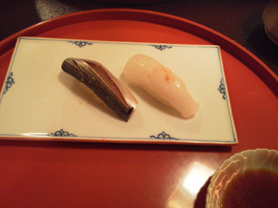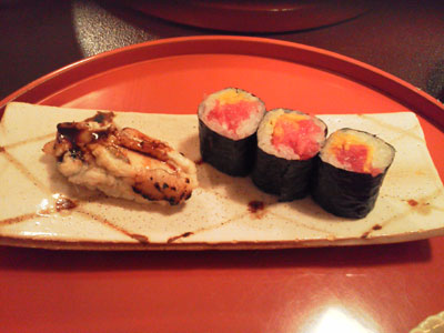 左は確か赤身。で、真ん中がイカで、右が海老。