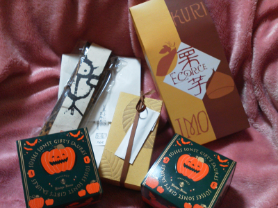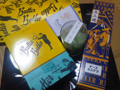 左の黄色の四角い箱にはバターが効いたフィナンシェが入っています。