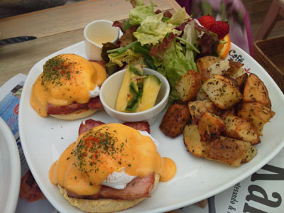 上にアーモンドがのったドーム型のチョコケーキは、濃厚なチョコレート生地の上にヘーゼルナッツミルクチョコレートの層とメレンゲと言う感じで凝ったケーキでした。