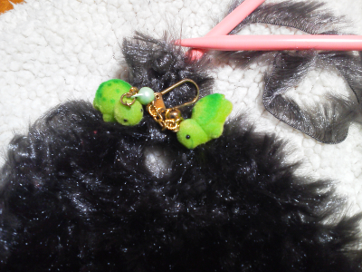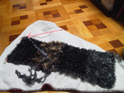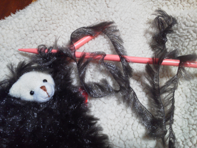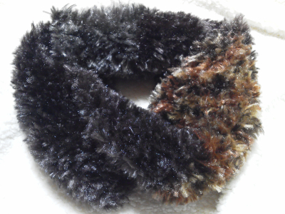 一番手こずったのが、フェイクファーと言う名前の毛糸で編んだスヌードです。