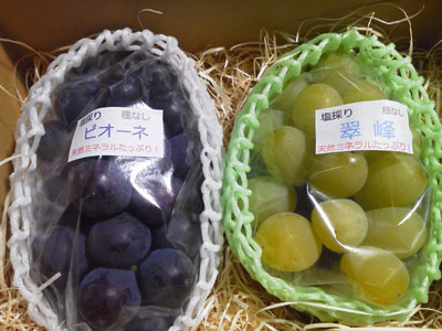 お汁粉に塩をほんのひとつまみと言いますが、葡萄も塩を使った栽培をすると、第三の旨味(こく?)が出るんですね。