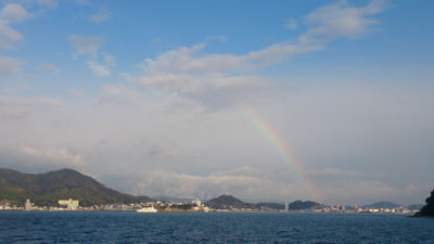 それと、昨日雨上がりに虹が出ていまして、すごく綺麗な半円でした。